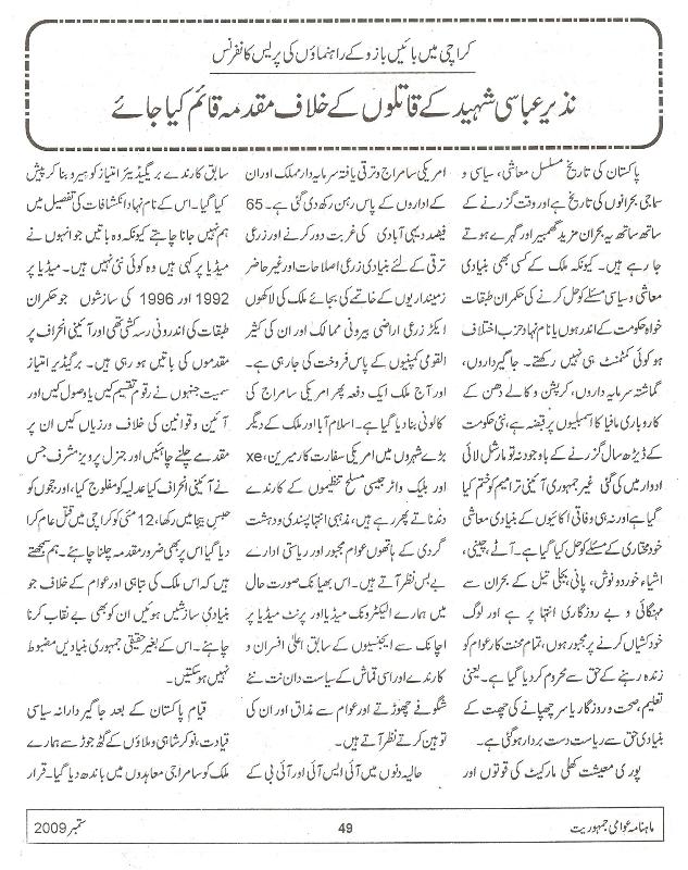 Cases must be initiated against Murderers of Nazir Abbasi - - - Press Conference in Karachi by the Leftist Leaders