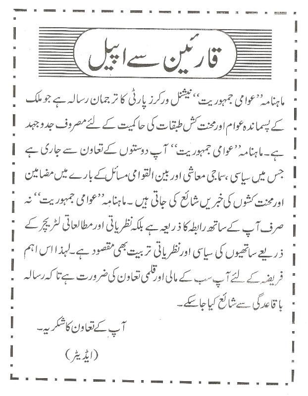 Appeal to the Readers of the Awami Jamhooriat