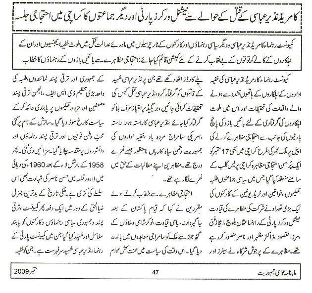 National Workers Party and other left Demo in Karachi against murder of Comrade Nazir Abbasi