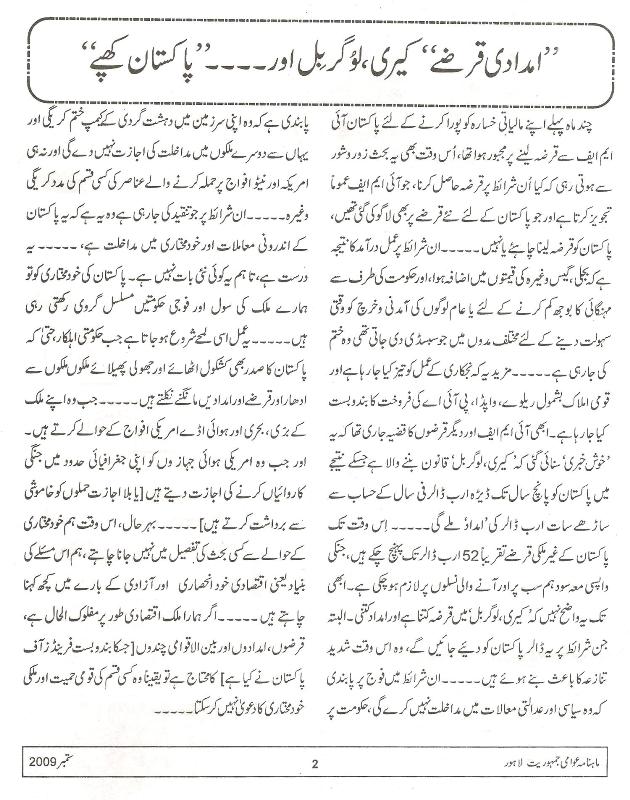 |Editorial (Kerry Lugar Bill) by Abid H. Minto|