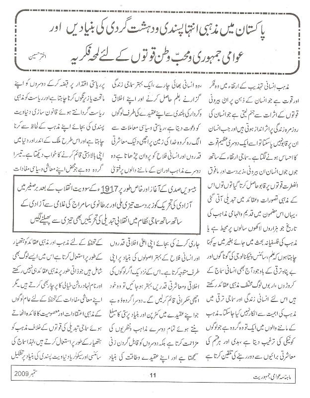 Roots of Extremism, Terrorism, the concerns of Patriotic and Democratic Forces in Pakistan by Akhtar Hussain